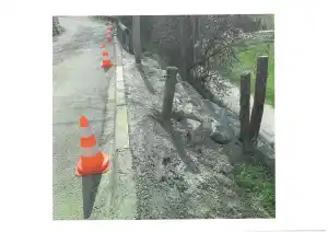 Réparation glissement de terrain Grand Rue par les employés communaux. Reprise de la glissière bois