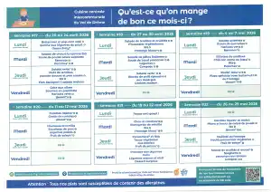 Les repas sont préparés sur place par un cuisinier, selon la charte de la C.C.V.D " Ca bouge dans ma cantine"